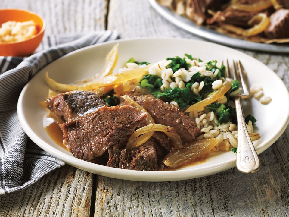 HORSERADISH-BRAISED POT ROAST WITH BARLEY & KALE