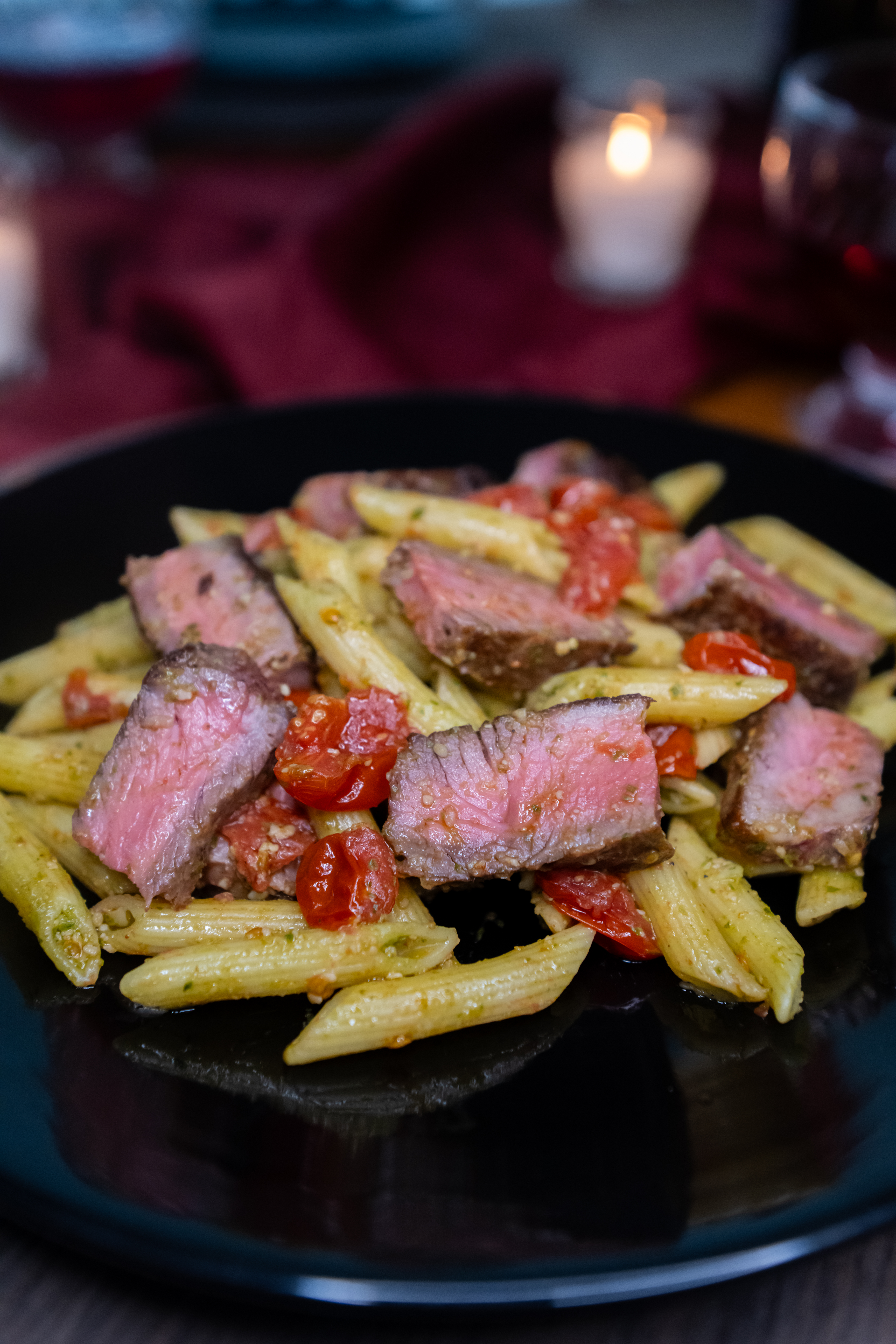 Steak Pesto Pasta with Tomatoes